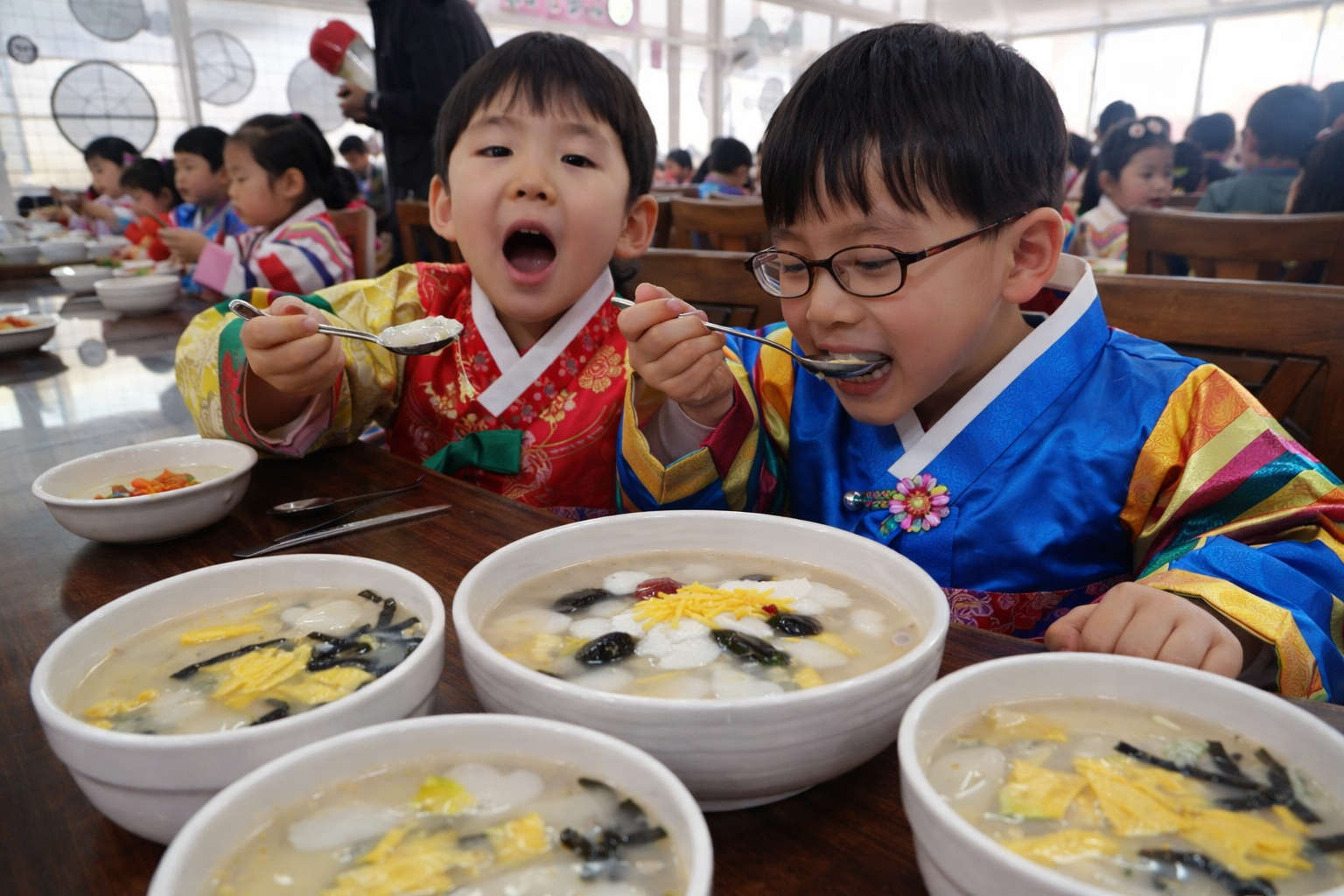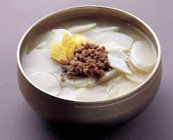 在韓國,一到春節就會吃 年糕湯(떡국)。