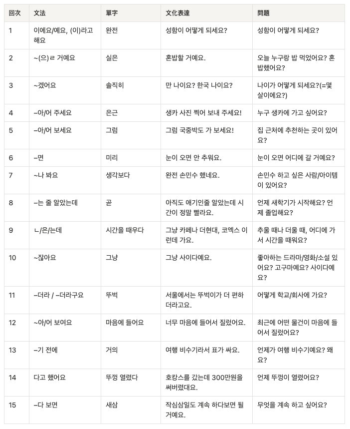 (例:預約的經驗、혼밥、購物、移動方式、追的韓劇等等)