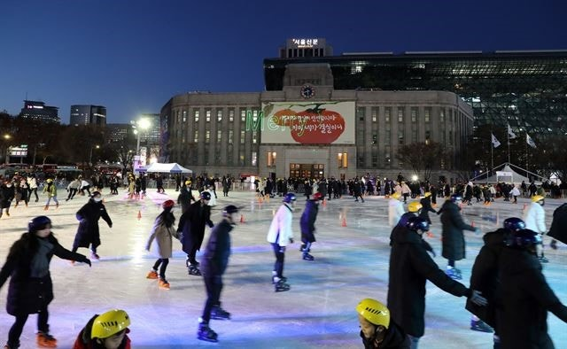 尤其是 首爾市廳前的季節限定溜冰場 很受歡迎!