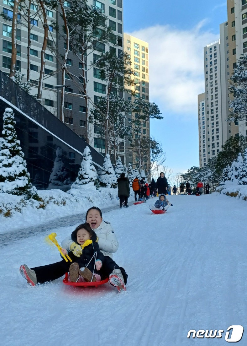 現在只要一下雪,公園或公寓社區裡就會臨時做出小型雪橇場。