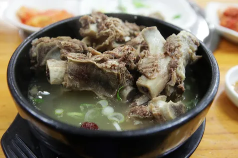 很多韓國人吃排骨湯時會直接用手拿排骨啃,